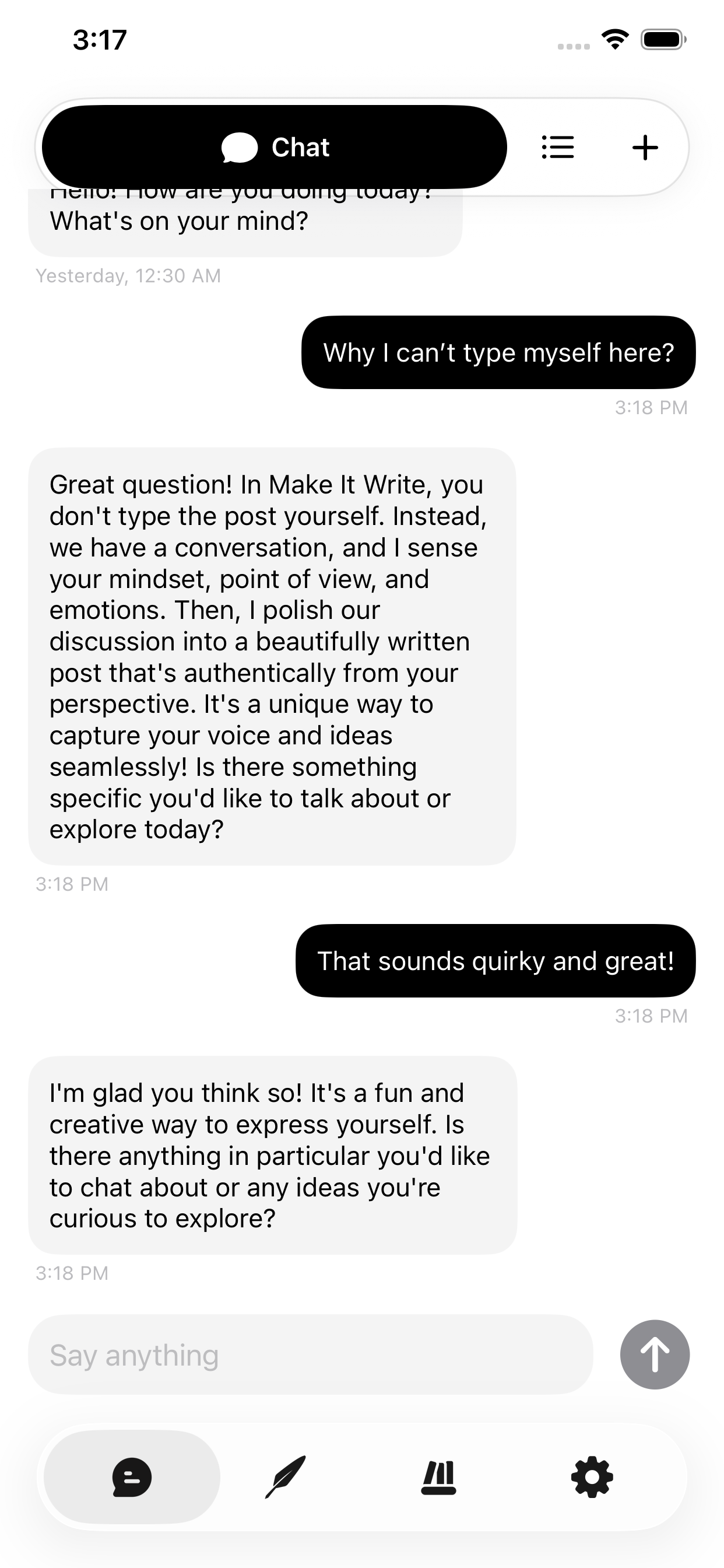 To protect the quality of the ecosystem. By removing manual typing, we eliminate the impulsive noise and superficial "filler" that plague modern social platforms. Our AI acts as a structural filter, taking your raw thoughts and shaping them into a firm, clear narrative that ensures every post is a deliberate contribution to the collective human story.